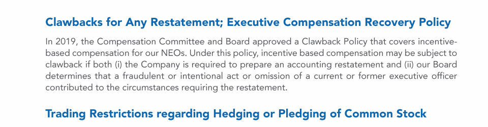Clawbacks for Any Restatement; Executive Compensation Recovery Policy