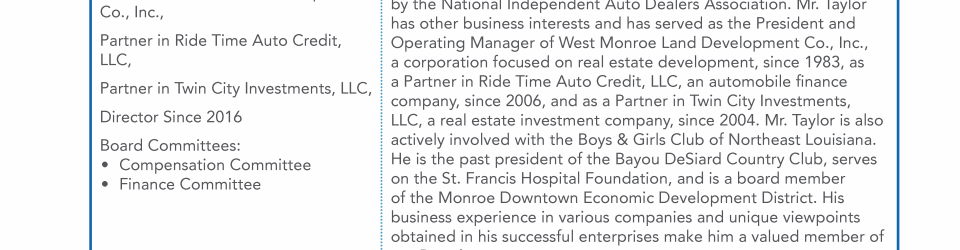 - Director Nominee Qualifications and Experience