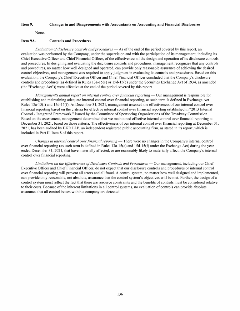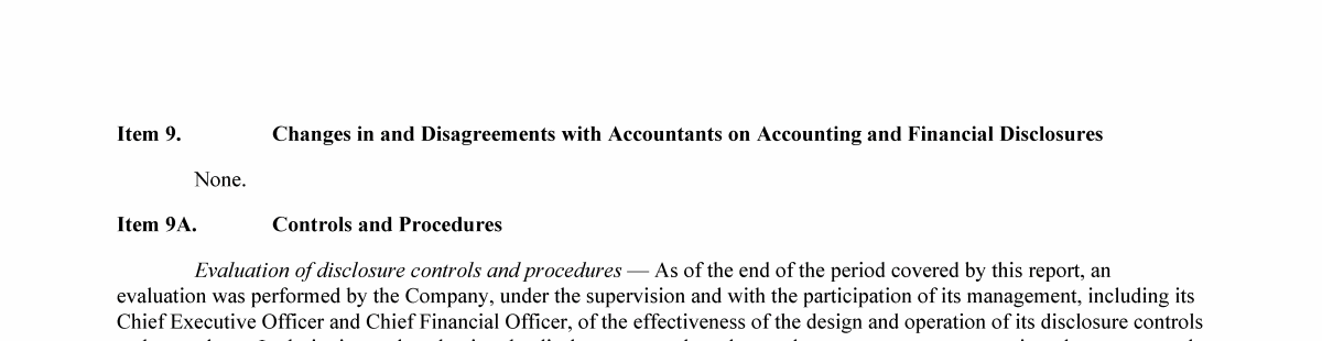 9. Changes in and Disagreements with Accountants on Accounting and Financial Disclosure
