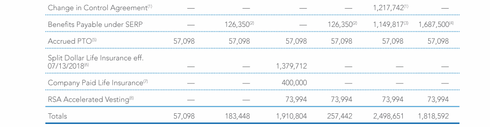 Employment Arrangements, Change in Control Agreements, and Potential Payments Upon Termination or Change in Control