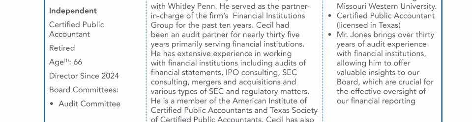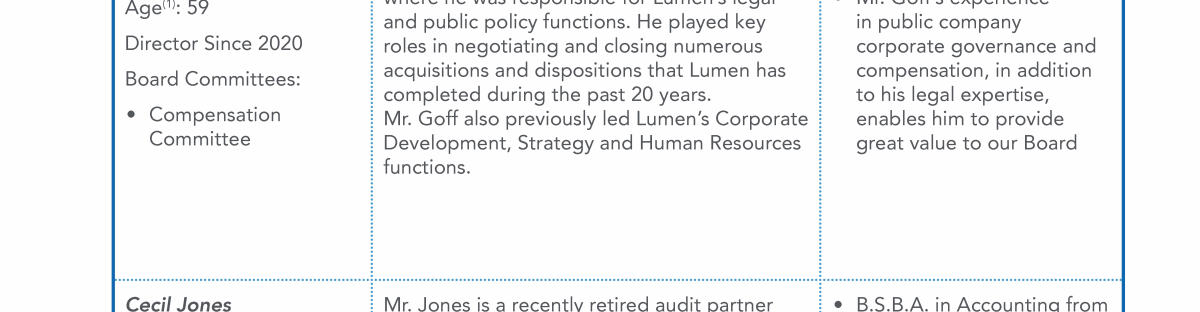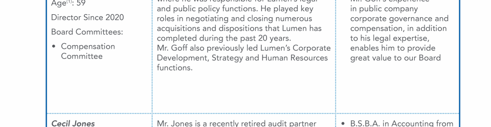 - Director Nominee Qualifications and Experience