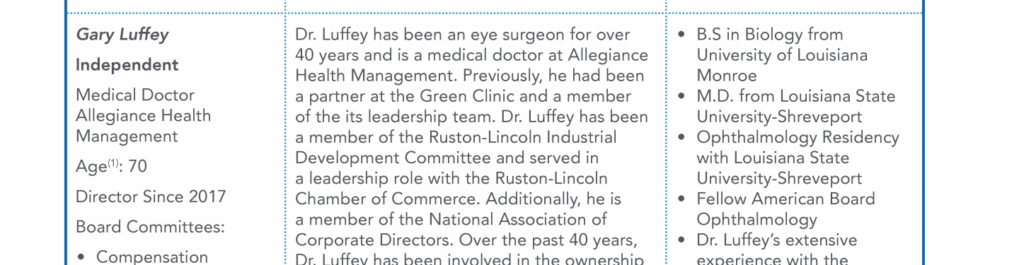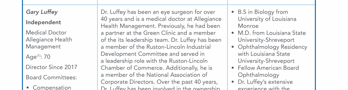 - Director Nominee Qualifications and Experience