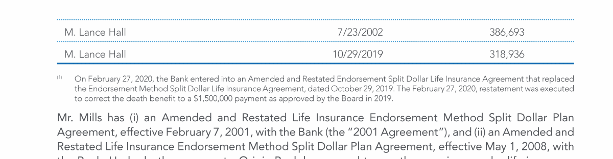 Supplemental Executive Retirement Plan and Executive Supplemental Income Agreement