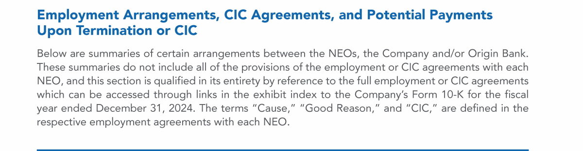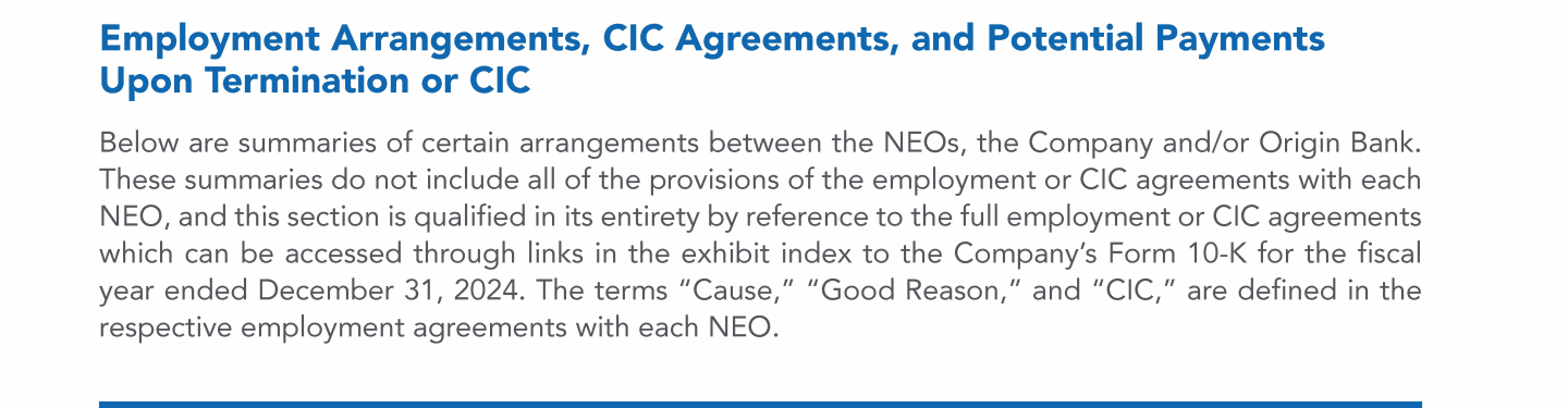 Employment Arrangements, CIC Agreements, and Potential Payments Upon Termination or CIC