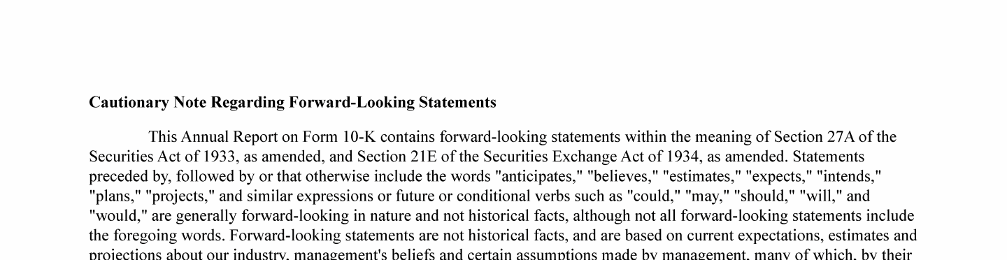 Cautionary Note Regarding Forward-Looking Statements