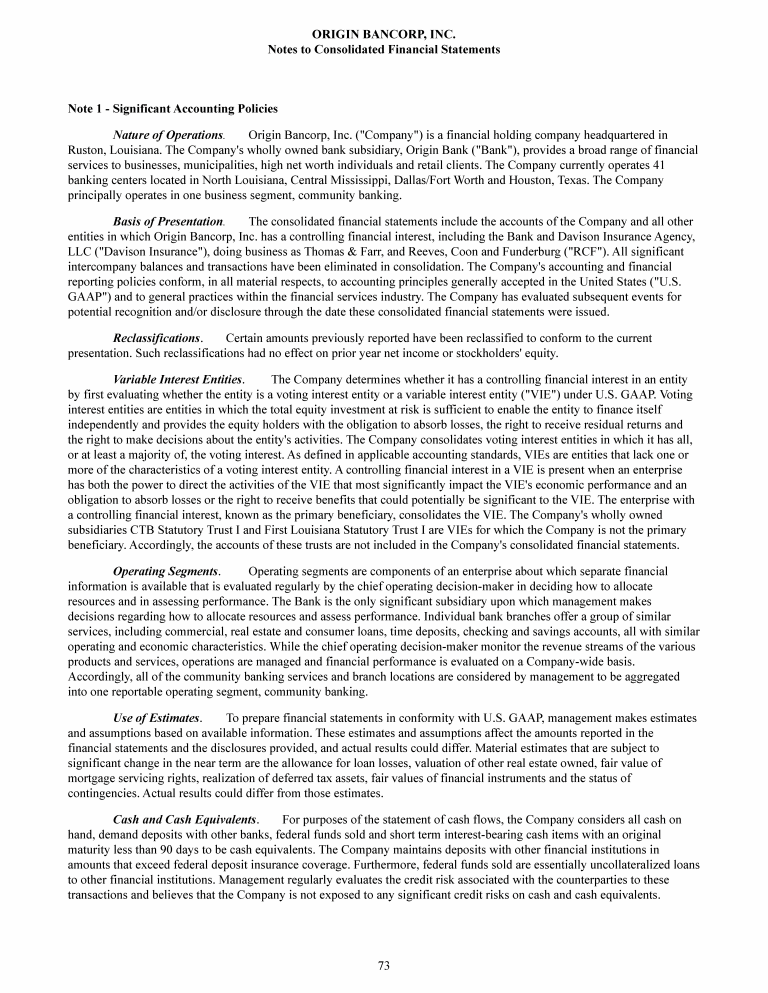 Origin Bank Management