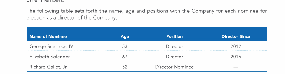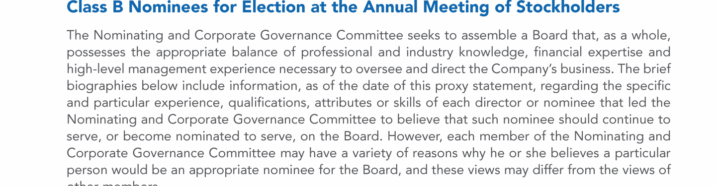 - Class B Nominees for Election at the Annual Meeting of Stockholders
