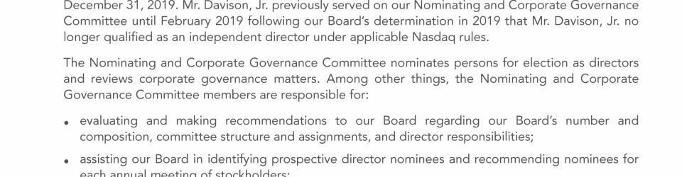 Stockholder Nominees and Proposals for 2021 Annual Meeting