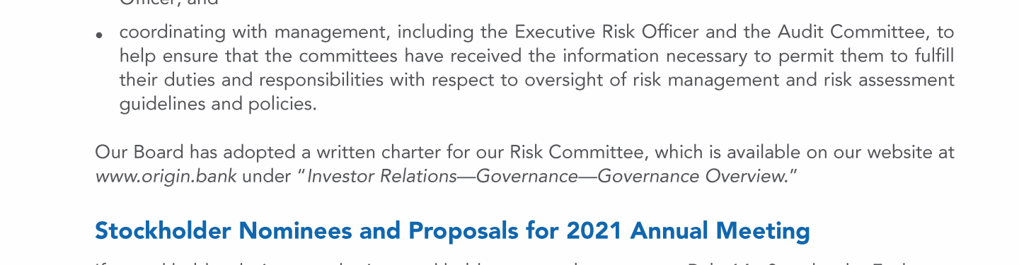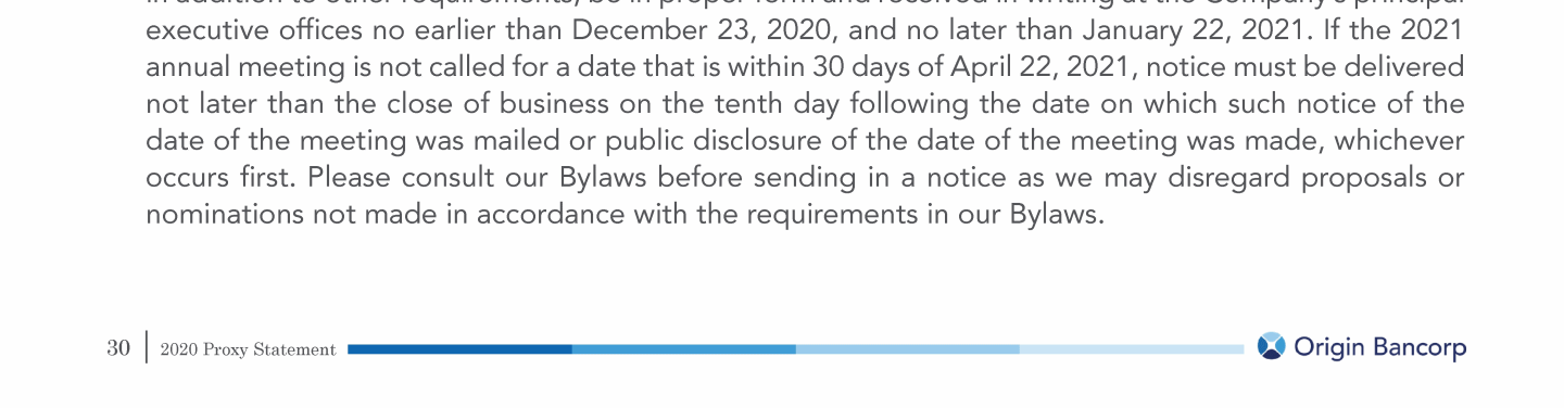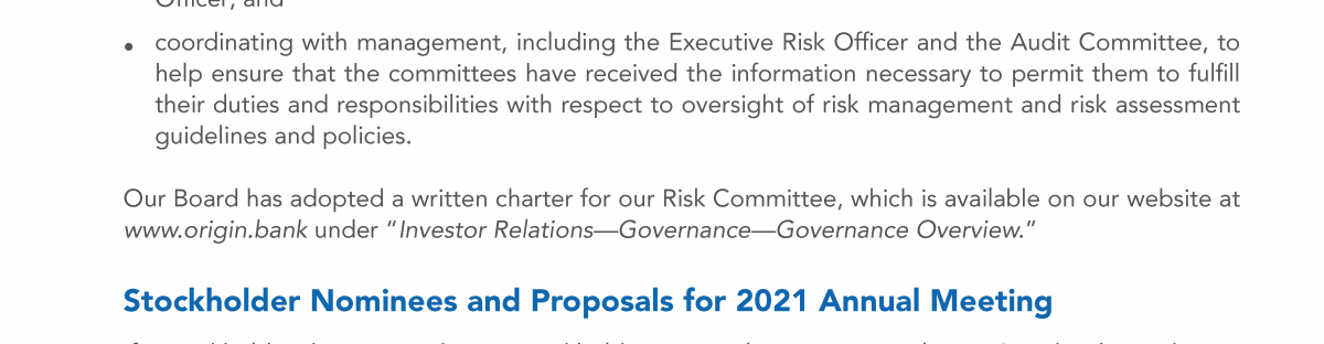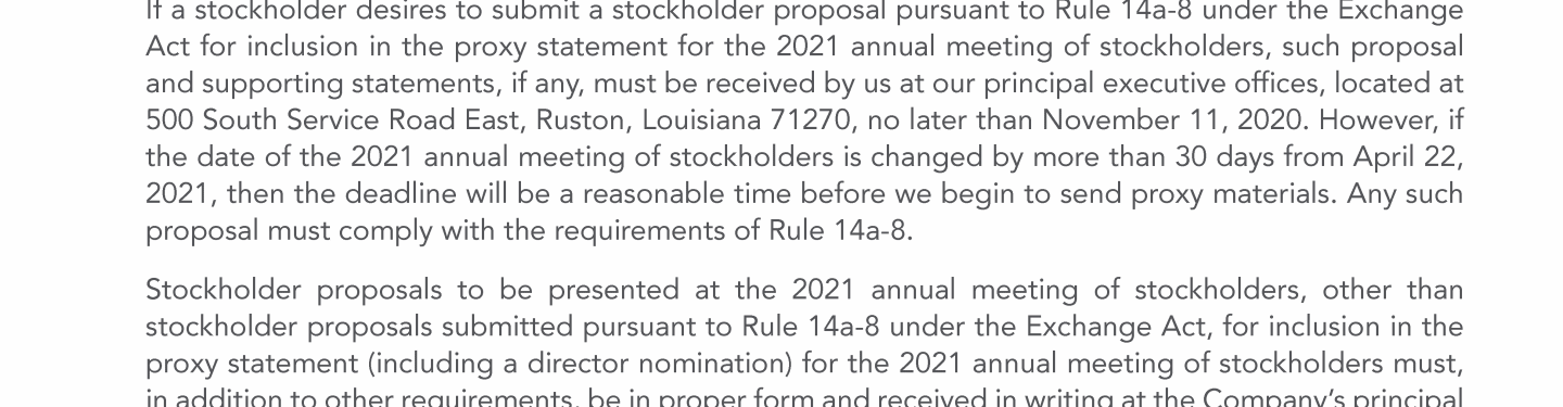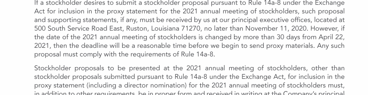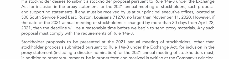 Stockholder Nominees and Proposals for 2021 Annual Meeting