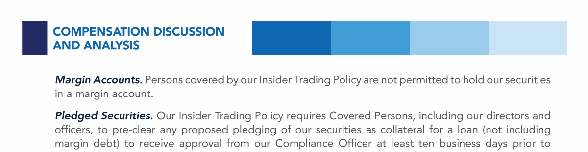 Trading Restrictions regarding Hedging or Pledging of Common Stock