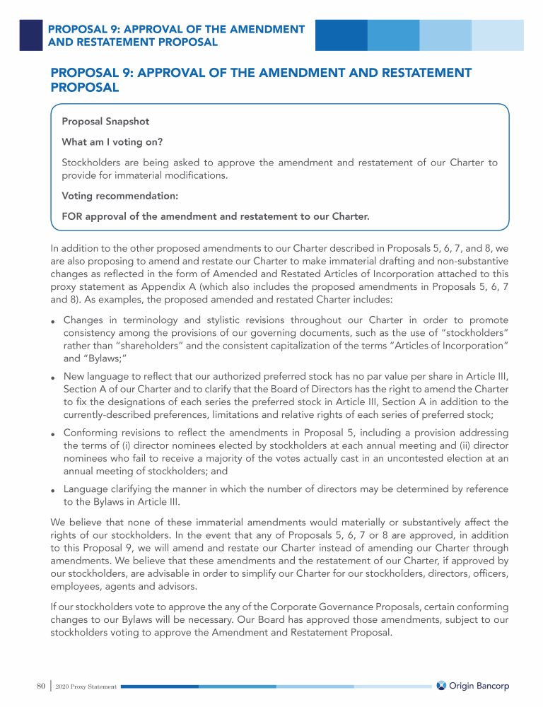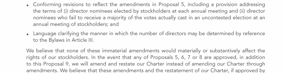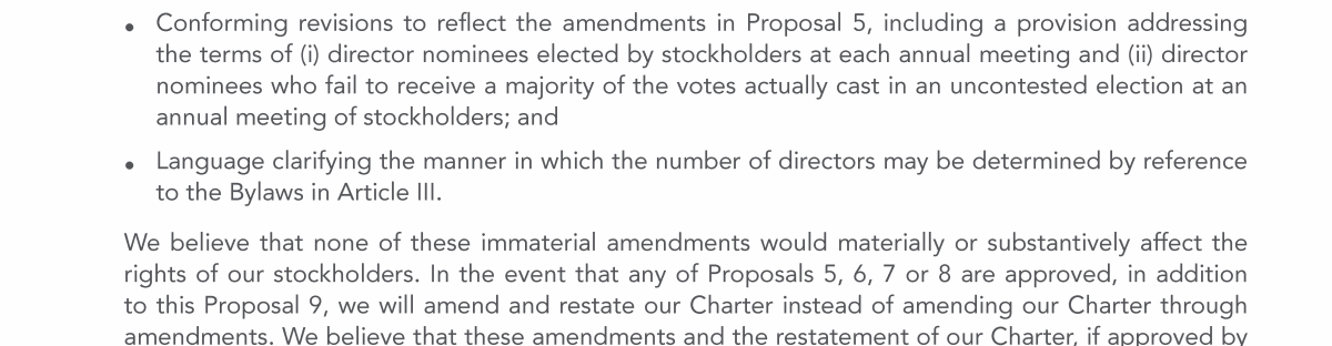 Proposal 9: Approval of the Amendment and Restatement Proposal