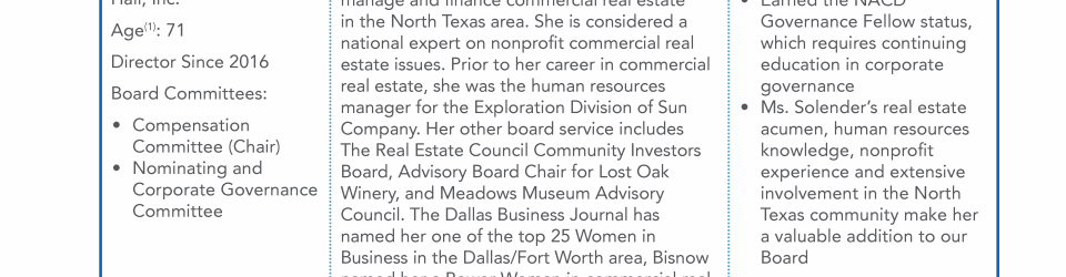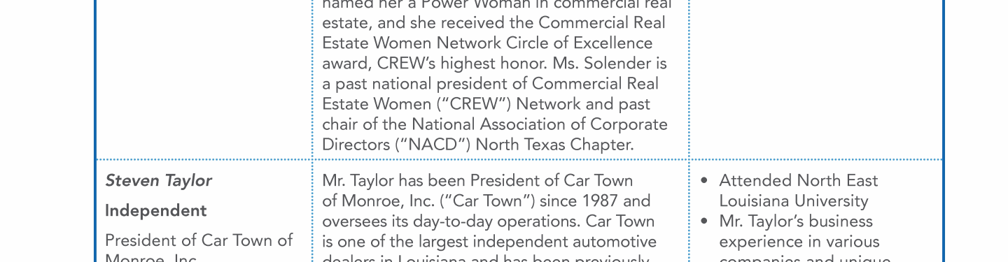 - Director Nominee Qualifications and Experience