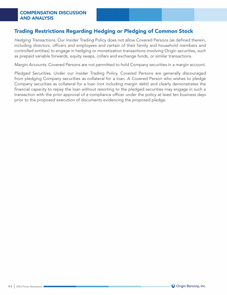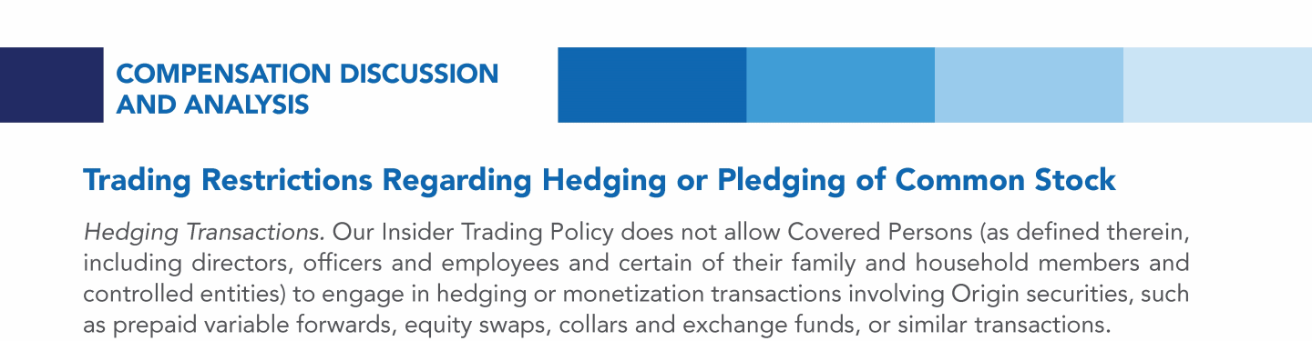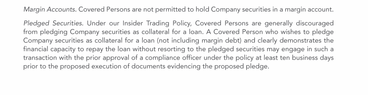Trading Restrictions Regarding Hedging or Pledging of Common Stock