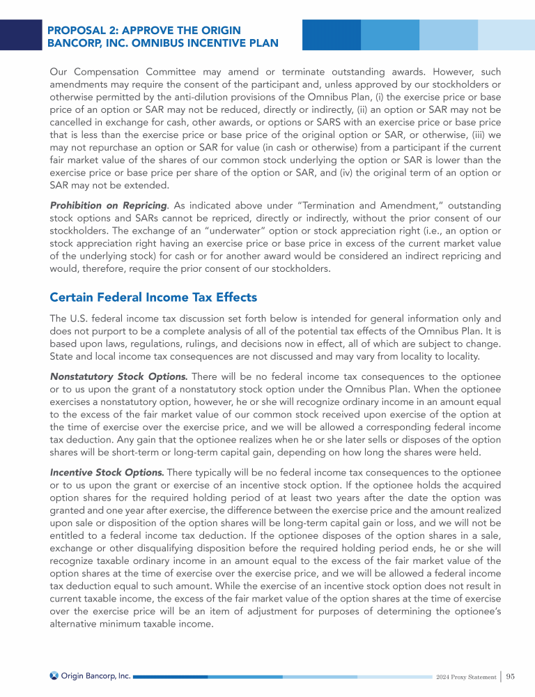 Proposal 2: Approval of the Origin Bancorp, Inc. Omnibus Incentive Plan