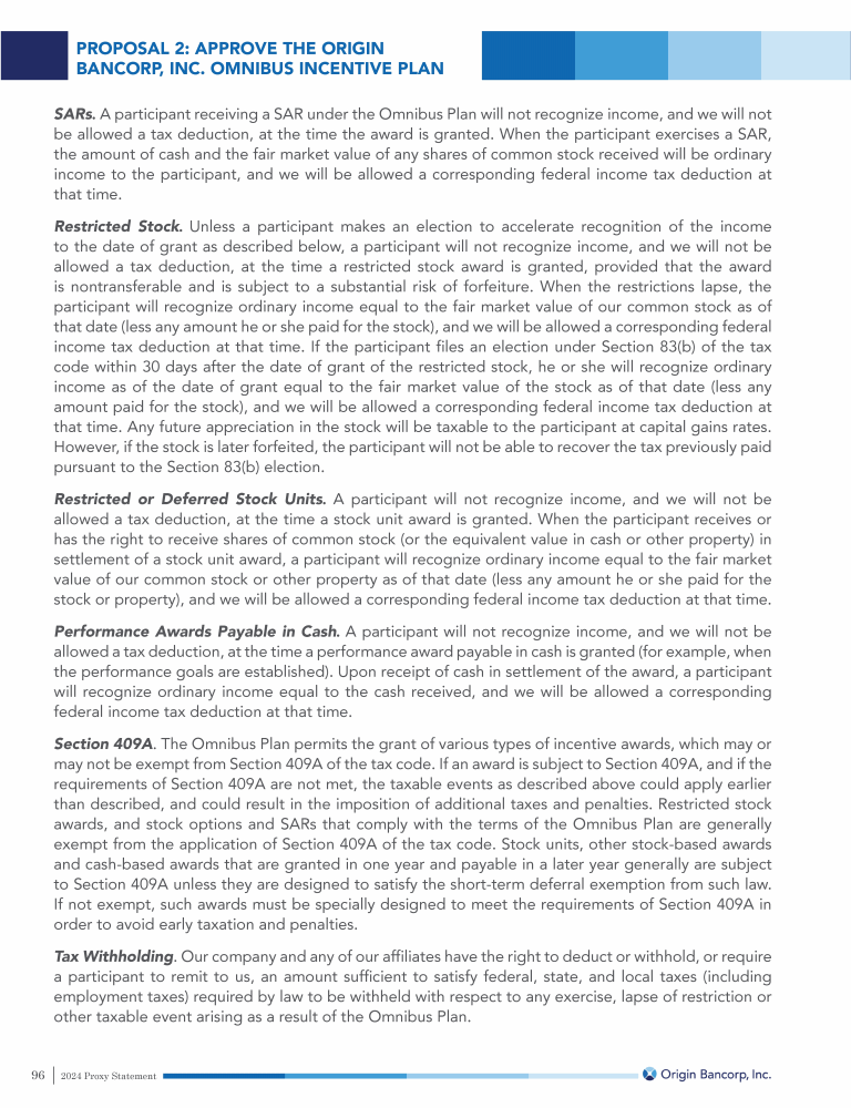 Proposal 2: Approval of the Origin Bancorp, Inc. Omnibus Incentive Plan