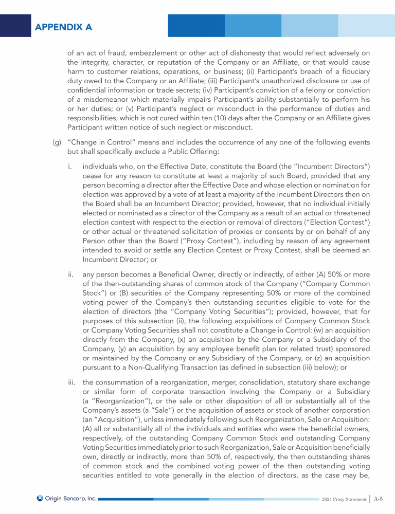 Appendix A - Origin Bancorp, Inc. Omnibus Incentive Plan