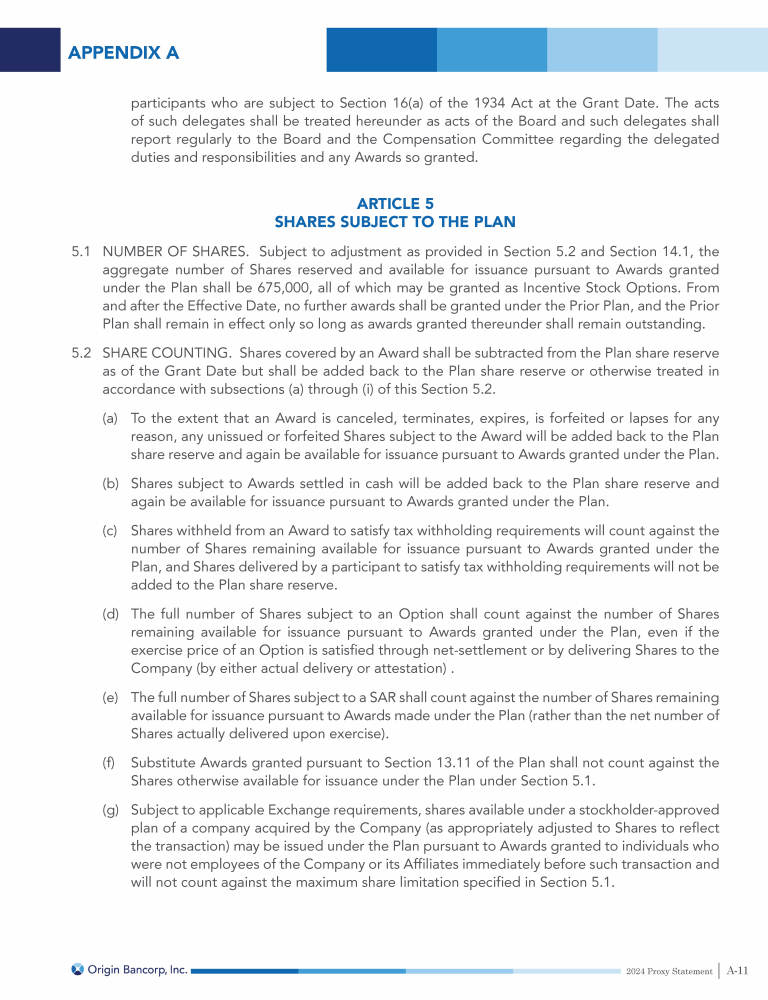 Appendix A - Origin Bancorp, Inc. Omnibus Incentive Plan