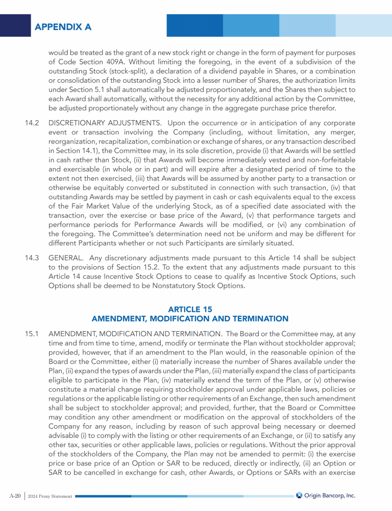 Appendix A - Origin Bancorp, Inc. Omnibus Incentive Plan